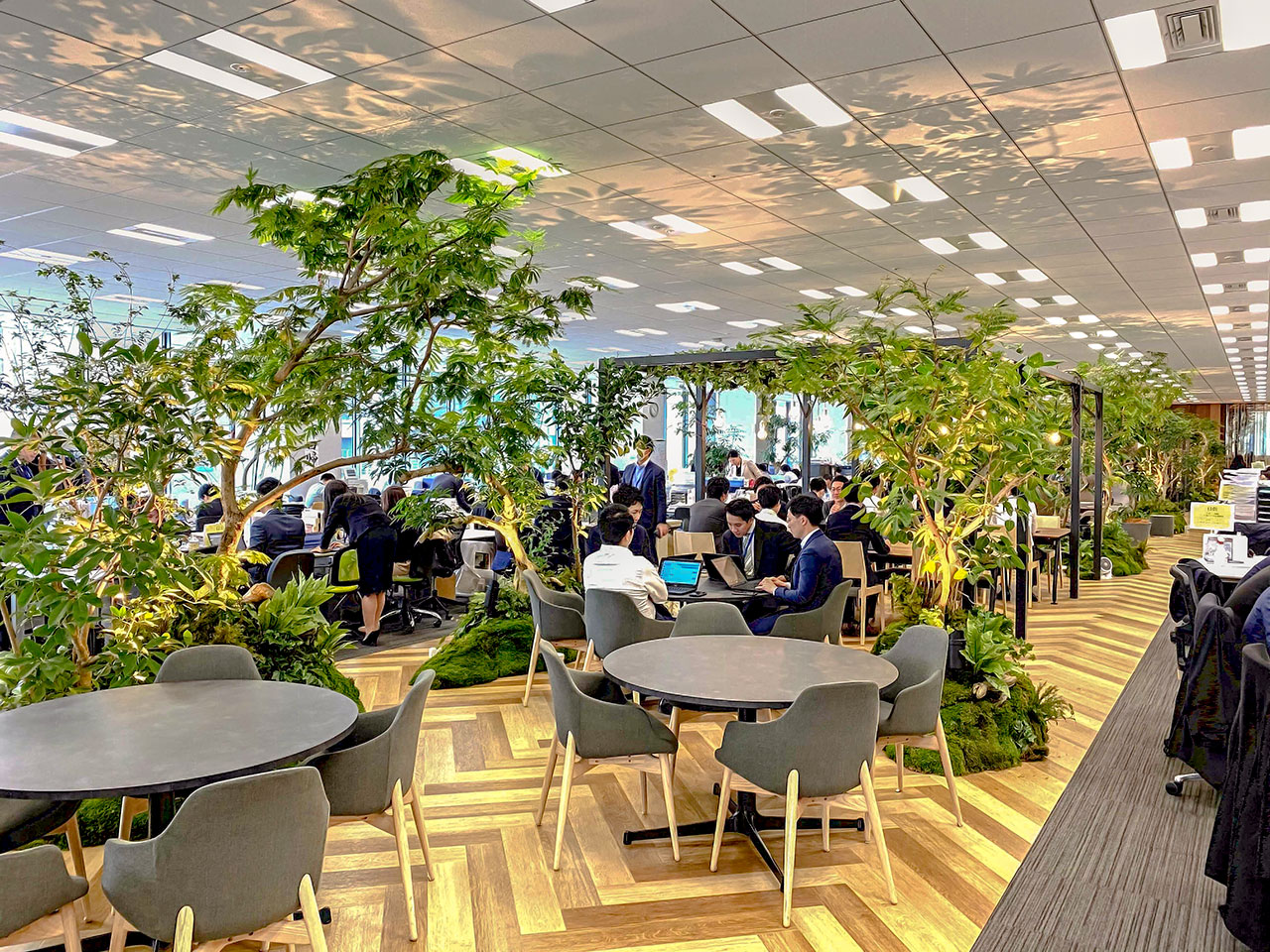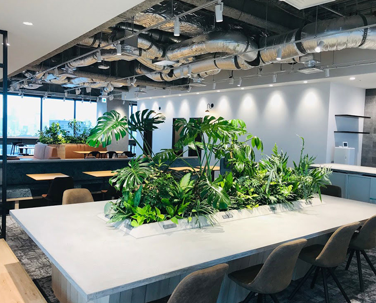 観葉植物を使って、空気清浄だけではなく、人とのパーティション作りや、騒音の減少を図ることも可能です。